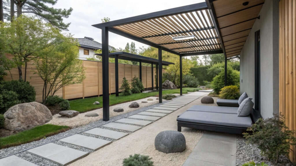 Стильный навес делает террасу гармоничным и продуманным продолжением вашего дома. -