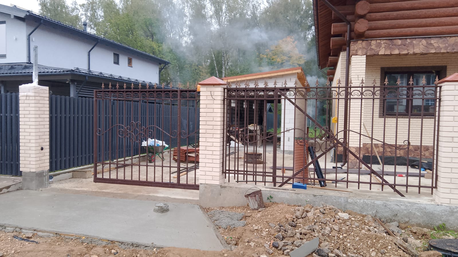 Кирпичные столбы — идеальная основа для комбинированных заборов. Между ними мы устанавливаем кованые секции, профнастил, 3D-панели, дерево или евроштакетник, создавая уникальный рисунок.