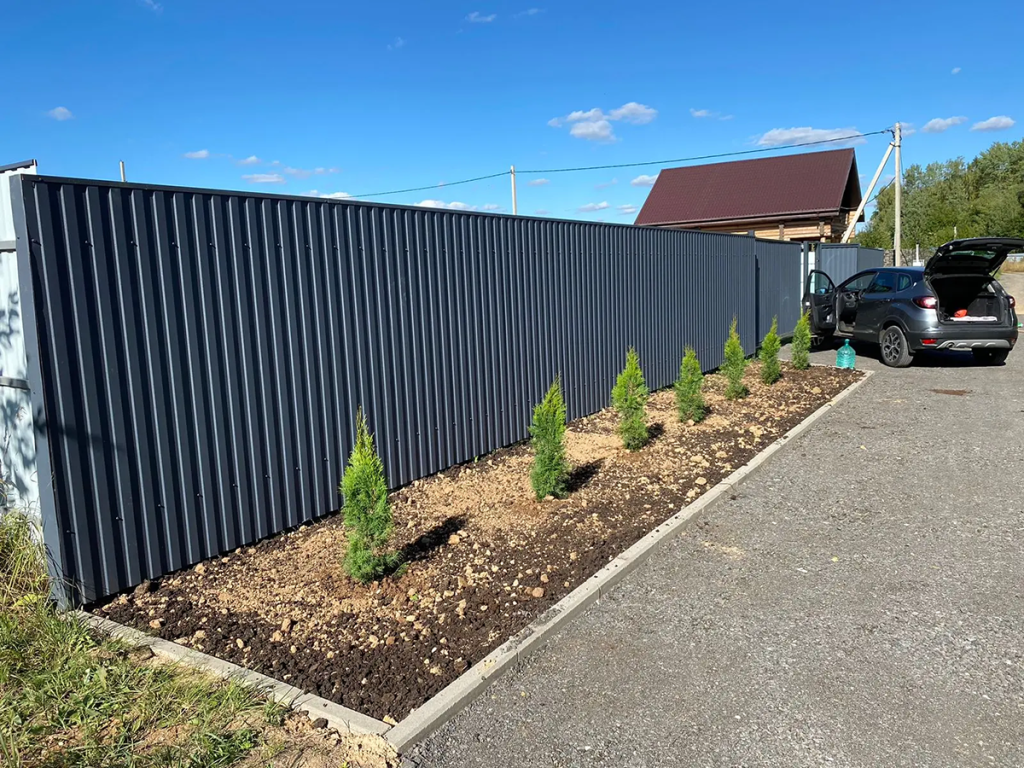 Профнастил — один из самых доступных материалов для создания капитального и эстетичного забора. -